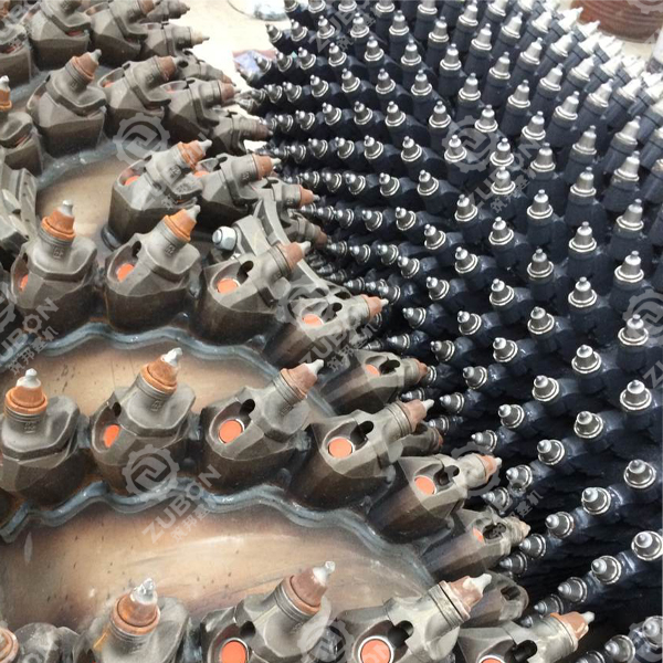 冷卻噴淋裝置失效,導(dǎo)致刀頭溫度升高、磨損加劇;銑刨水泥路面時,由于速度過快,導(dǎo)致刀頭的崩裂、折斷;收工停機時,沒有對銑刨鼓清洗,刀頭與刀座之間的縫隙充滿廢料,下次開工時,由于廢料的凝結(jié)等原因,刀頭不能旋轉(zhuǎn),造成偏磨。