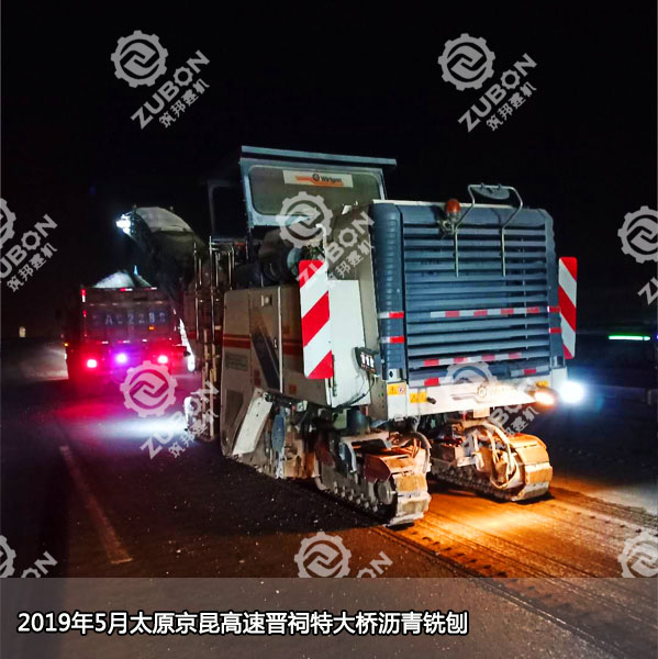 2019年5月12日,山西省京昆高速公路晉祠高架橋加固工程(K494+550—K498+550)開始進行施工,此次橋面瀝青銑刨用到的是維特根2米銑刨機W2000,銑刨厚度9公分。2米銑刨機租賃