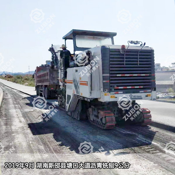 2019年9月,湖南新邵縣塘口大道瀝青路面銑刨9公分,施工機器維特根銑刨機W2000--2米銑刨機出租