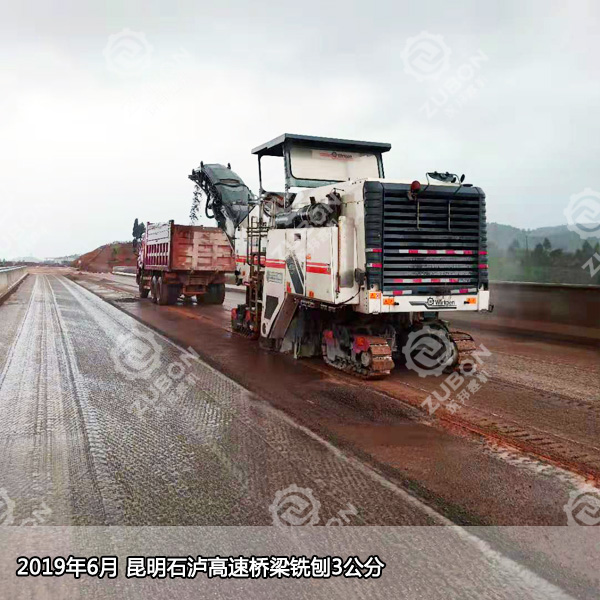 橋面銑刨是解決橋面防水砼表面浮漿影響后鋪結構層的質量,為了提高其使用壽命,現流行進行橋面精銑刨即待防水砼達到設計強度后將其表面采用精銑刨(6mm左右)和刻槽處理,并用高壓氣流吹去表面雜塵,之后立即采用乳化瀝青下透、封孔來提高使用壽命。