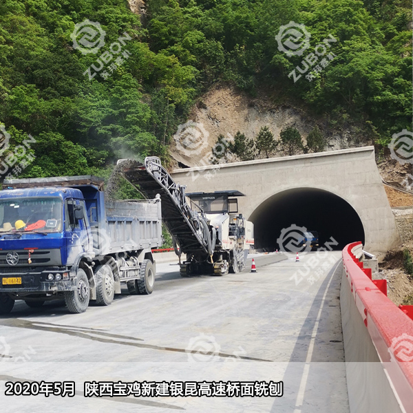 2020年5月新建銀昆高速陜西寶雞段橋面銑刨,此次上陣的是0.5米銑刨機(jī)W50H,主要配合大型2米銑刨機(jī)完成橋面邊角銑刨。