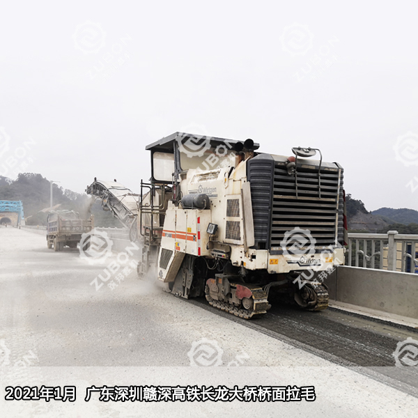 2021年1月12日廣東深圳贛深高鐵長龍大橋橋面拉毛。深圳銑刨機租賃