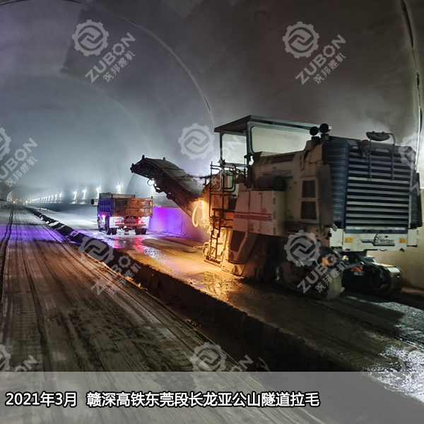 仰拱鑿毛及填充面進(jìn)行清理鑿毛,鑿除已澆筑混凝土表面的水泥砂漿和松散層,然后用用高壓水仰拱填充頂面沖洗干凈,去除泥滅、積水等雜質(zhì),使其標(biāo)高達(dá)到設(shè)計(jì)要求,就需要用大型銑刨機(jī)進(jìn)行連續(xù)銑刨作業(yè),無(wú)論從銑刨深度還是銑刨效率及平整度而言,筑邦溫馨提示大型銑刨機(jī)比小型手推式銑刨機(jī)有明顯優(yōu)勢(shì)。采用德國(guó)進(jìn)口專(zhuān)用設(shè)備施工,施工質(zhì)量控制精度高,施工方便、進(jìn)度快,施工后具有宏觀(guān)平整、微觀(guān)粗糙的表面,能提供足夠抗滑構(gòu)造。