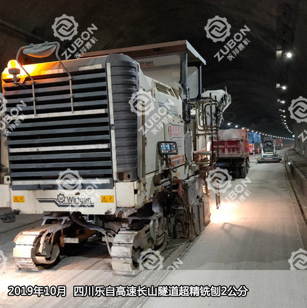四川樂自高速公路長山隧道抗滑性能提升改造精銑刨2公分,此次用到的銑刨機是維特根精銑刨機W2000。隧道精銑刨