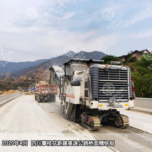 2020年4月四川攀枝花新建高速公路全線橋面精銑刨,此次用到的設(shè)備是維特根精銑刨機(jī)W2000和山貓清掃機(jī)。