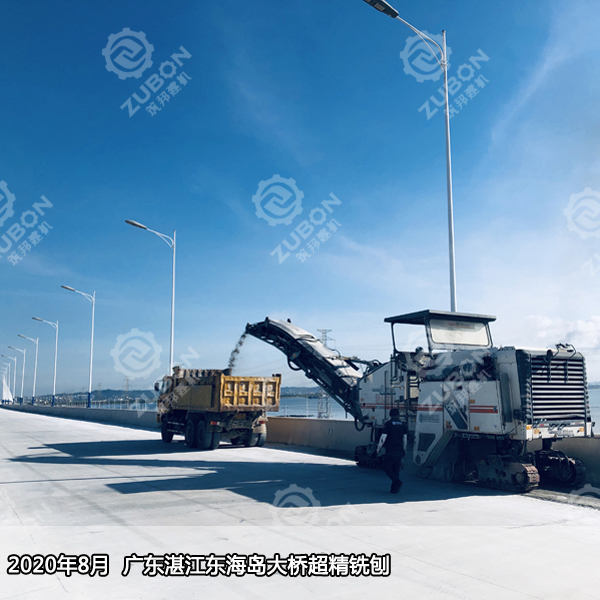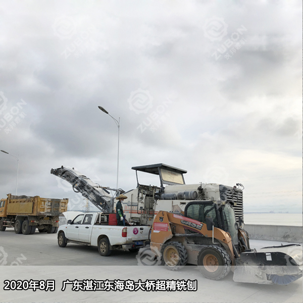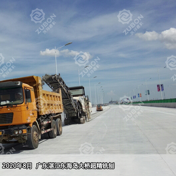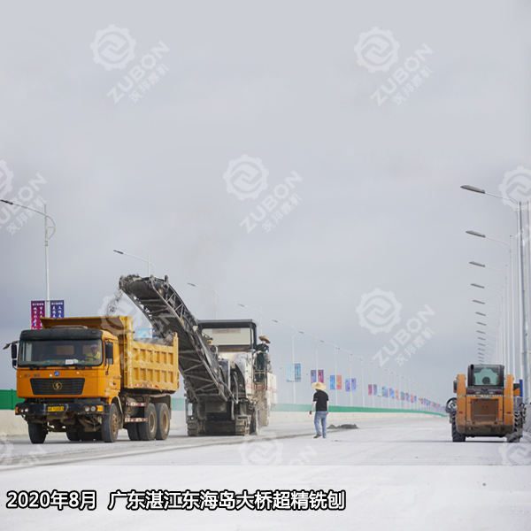 2020年8月廣東湛江東海島大橋超精銑刨,繼6月超精銑刨試驗段測試滿意后,原班人馬再赴東海島大橋完成剩余60000㎡橋面精銑刨作業,維特根精銑刨機W2000搭配700多把刀頭銑鼓,精銑刨完后直接開放交通。