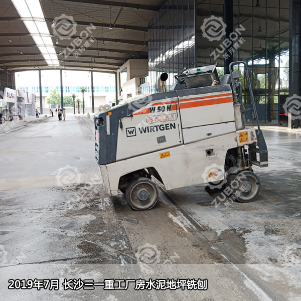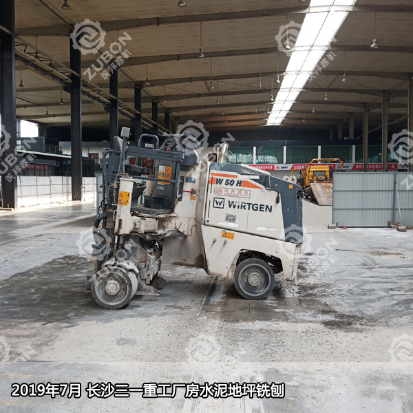 2019年7月,筑邦建機的維特根W50H機器開進了長沙三一重工廠房,銑刨厚度2公分,銑刨過后鋪設地板膠。
