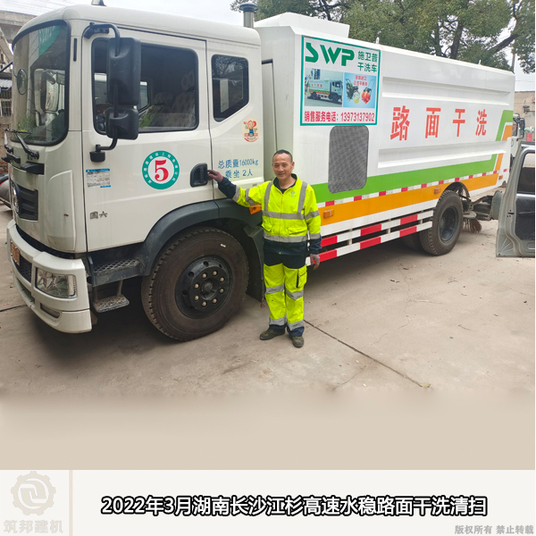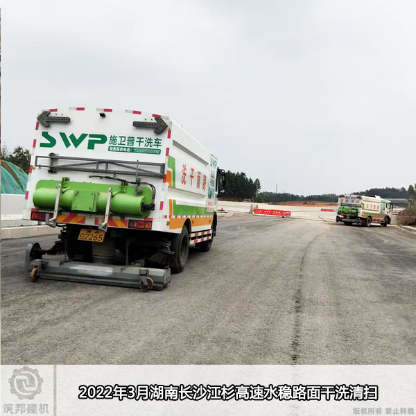 2022年3月湖南長沙江杉高速水穩路面干洗清掃。